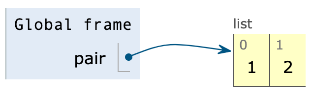 Python hides the memory from the programmer, so even though there is a pointer, as the programmers we just think of pair as a variable. It is called a reference.